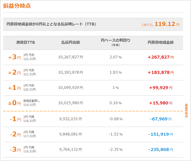 為替相場が上下3円動いた場合のシミュレーション結果が表示されるようになりました。