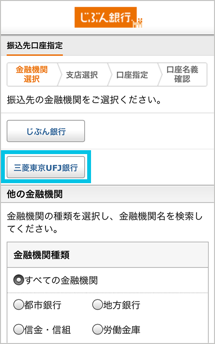 振込先金融機関としてご利用の多い「三菱東京UFJ銀行」の選択ボタンを追加しました。
