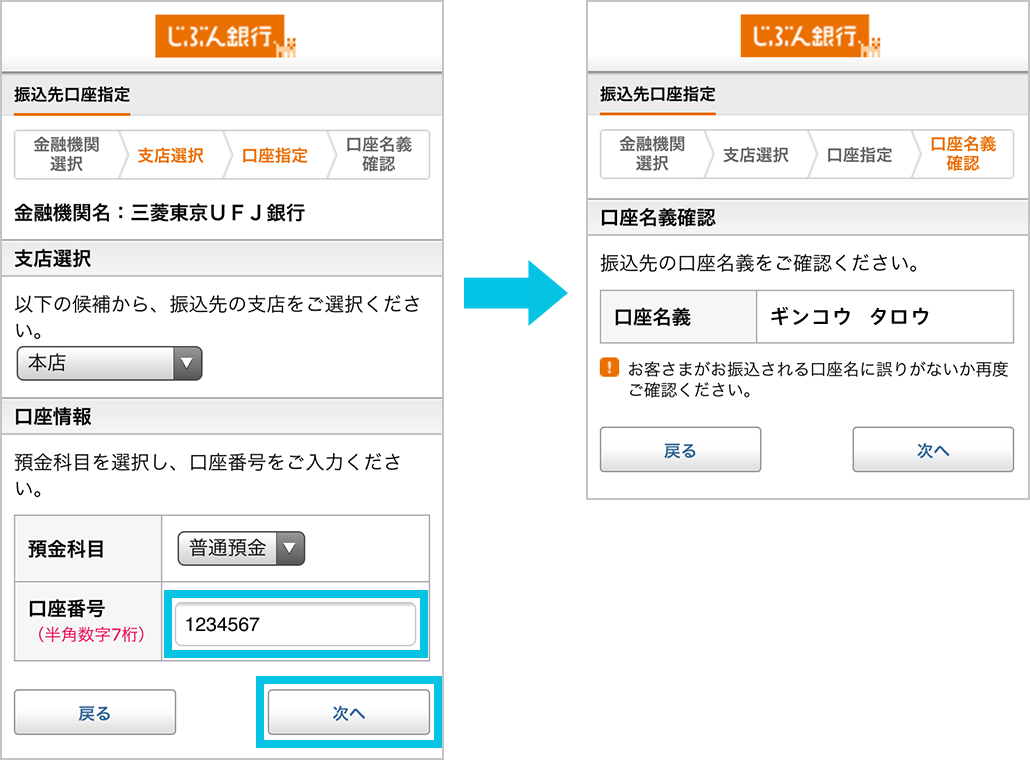 - ※上記時間外はお受取人さまの名義が表示されませんが、振込サービスは従来どおりご利用いただけます。