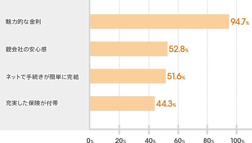 住宅ローンをご契約いただいたお客さまを対象としたアンケートでは、当行の住宅ローンをご選択いただいた理由として以下が主なものとなりました。*3