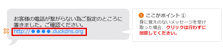- ②開封した場合も、記載のURLをクリックしたり添付ファイルを開いたりしないでください。