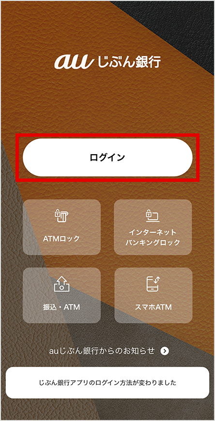 じぶん銀行アプリを起動し、「ログイン」を選択