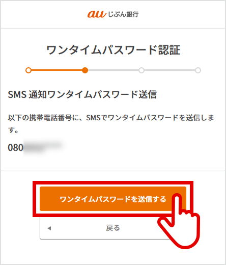 表示された携帯電話番号(もしくはメールアドレス)を確認し、「ワンタイムパスワードを送信する」を選択