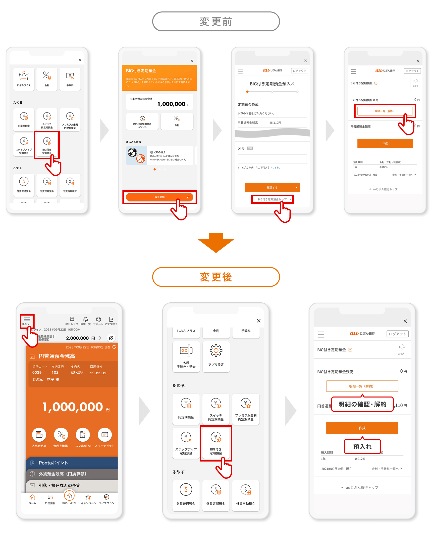 ■アプリからBIG付き定期預金のお取引をする際の画面を変更します