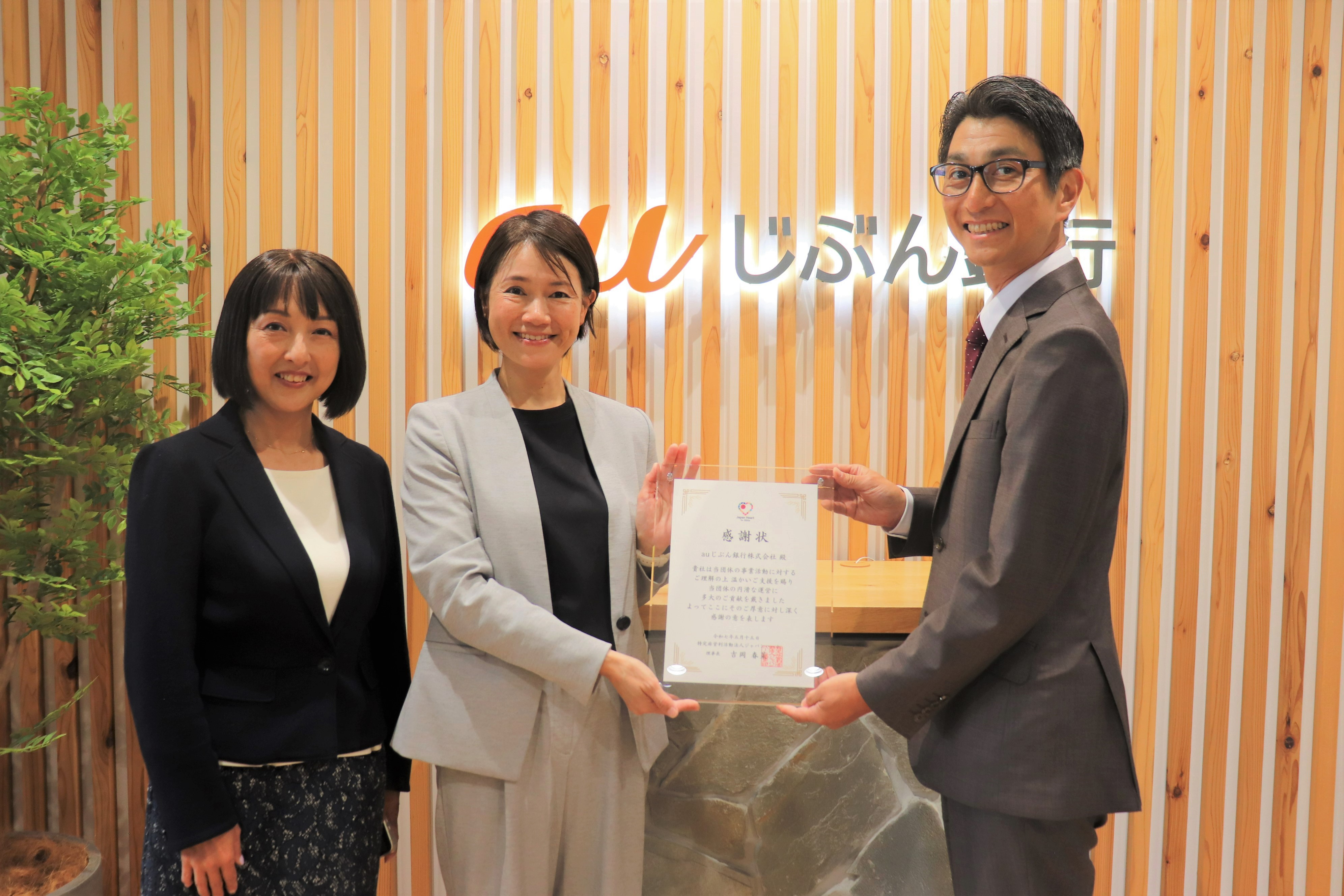 - ※左から特定非営利活動法人ジャパンハート伊藤さま、皆川さま、auじぶん銀行 社長 田中健二