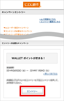 WALLET ポイントが貯まる!を選んで、エントリーボタンを押す
