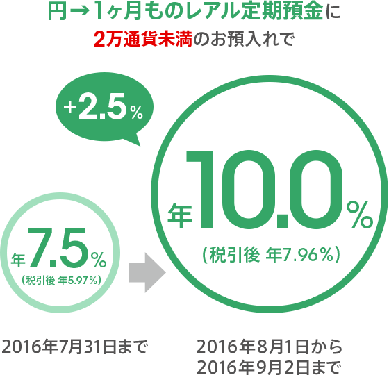 期間中、円普通預金から1ヶ月ものレアル定期預金へのお預入れで、下記金利を適用します。