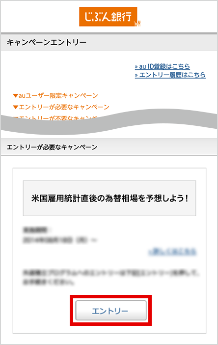 ご希望のキャンペーンを選んで、エントリーボタンを押す