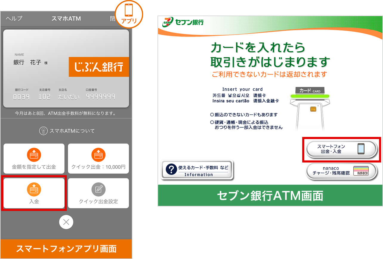 - じぶん銀行スマートフォンアプリでのスマホATMの操作方法はじぶん銀行ウェブサイトをご確認ください。
