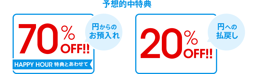 予想が的中したお客さまには、2017年12月8日(金)12時から24時までの、円普通預金から外貨普通預金または外貨定期預金へのお預入時の為替手数料、および外貨普通預金から円普通預金への払戻時にかかる為替手数料を20%OFFします。