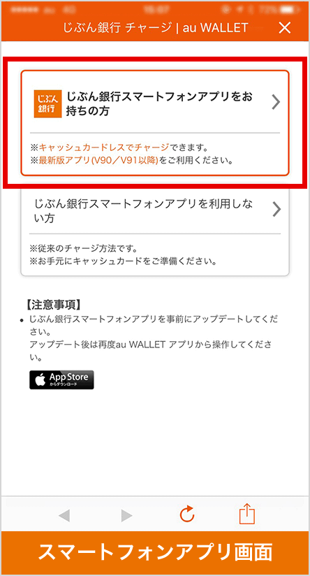 じぶん銀行スマートフォンアプリの利用状況にあわせて、チャージの方法を選択