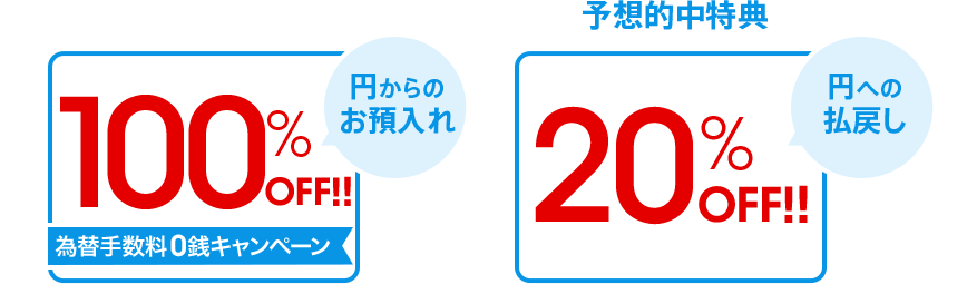 予想が的中したお客さまには、2018年3月9日(金)12:00~24:00までの、外貨普通預金から円普通預金への払戻時にかかる為替手数料を20%OFFします。