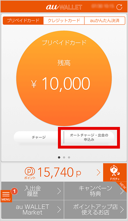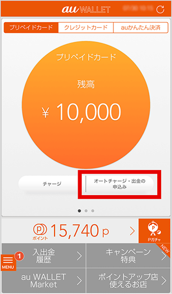 オートチャージ・出金サービスのお申込みは、KDDIが提供する「au WALLET アプリ」またはスマートフォン版au WALLET サイトから行ってください。