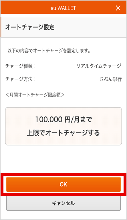 じぶん銀行円普通預金口座から「au WALLET プリペイドカード」へのオートチャージ設定は、KDDIが提供する「au WALLET アプリ」またはau WALLET サイトから行ってください。