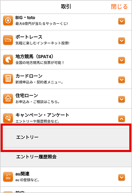 ログイン後、メニューから「キャペーン・アンケート」→「エントリー」を選択