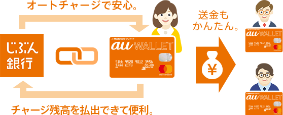 じぶん銀行とau WALLET プリペイドカードの連携機能が進化しました。お支払いのときに「足りない分だけ」チャージできるリアルタイムチャージや、プリペイドカード残高のじぶん銀行口座への払出(入金)、au WALLET プリペイドカード間の送金が可能に。