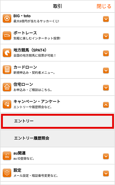 ログイン後、メニューからキャンペーン・アンケート→エントリーを選択