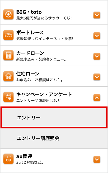 ログイン後、メニューからキャンペーン・アンケート→エントリーを選択
