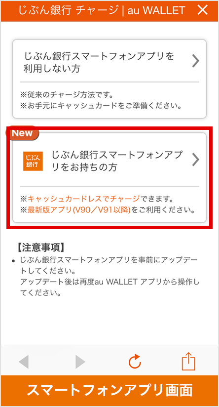 じぶん銀行スマートフォンアプリの利用状況にあわせて、チャージの方法を選択