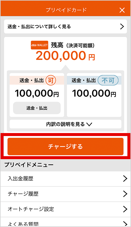 - ※じぶん銀行口座と連携されている場合は項目名が「チャージ・出金」と表記されます。