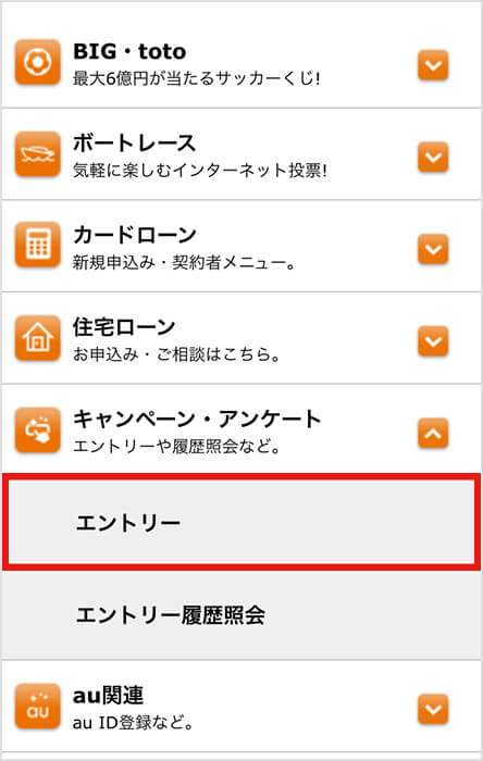 ログイン後、メニューからキャンペーン・アンケート→エントリーを選択