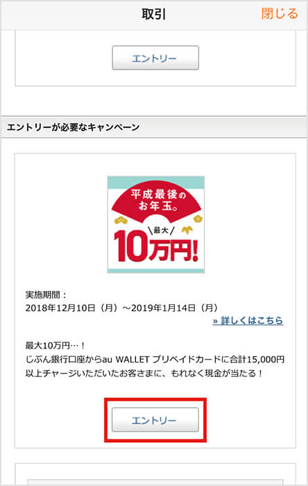 「平成最後のお年玉キャンペーン」を選んで、エントリーボタンを押す