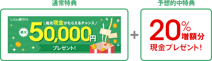 なお、予想的中特典「FXで毎月最大5万円プレゼントが20%増額分現金プレゼント」には変更はありません。
