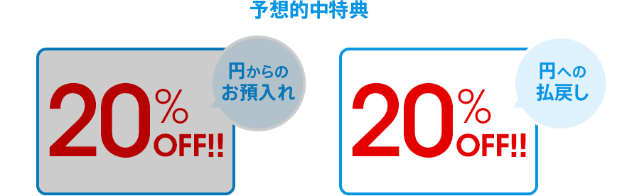 つきましては、「外貨取引の為替手数料20%OFF」は、「円への払戻し20%OFF」のみのご提供に変更となります。