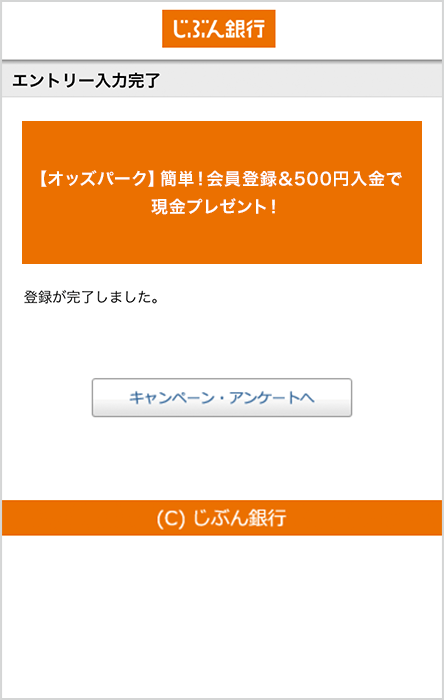 - じぶん銀行口座からオッズパークへ合計500円以上入金いただくこと