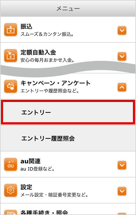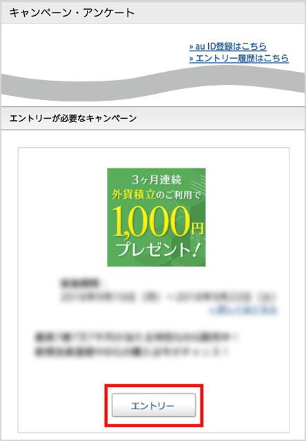 ログイン後、メニュー→「キャンペーン・アンケート」→「エントリー」を選択