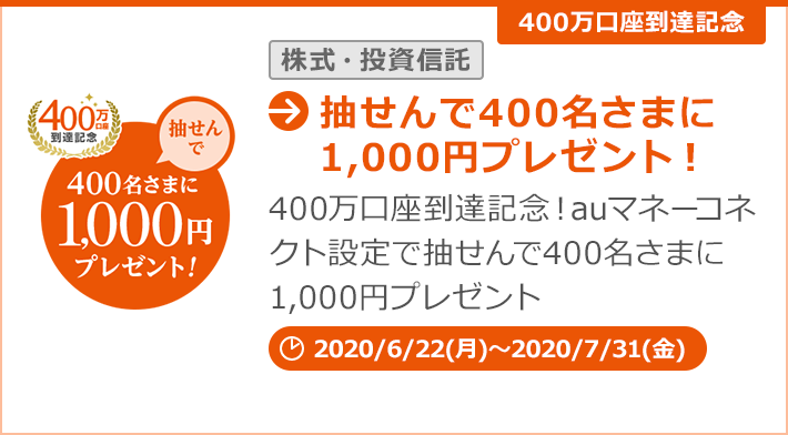 適用条件を満たしたお客さまの中から抽せんで400名さまに、現金1,000円をプレゼント