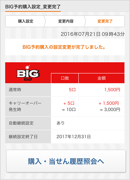 • 設定の変更・解除をする場合は、再度「BIG・toto」メニューから「BIG予約購入設定」より変更・解除いただけます。