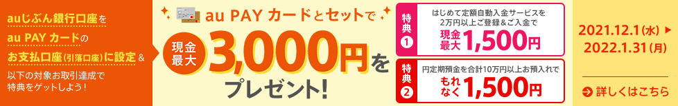 - 2021年11月24日(水)から2022年2月1日(火)までにお申込みいいただいた明細のうち、お預入れが成立した明細のみを対象とします。