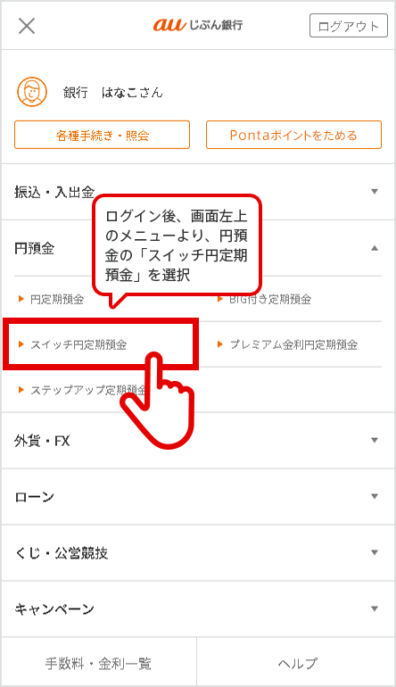 - 詳しくは、スイッチ円定期預金の商品詳細説明書と契約締結前交付書面をご確認いただき、必ず商品内容を十分にご理解のうえ、余裕資金でお申込みください。