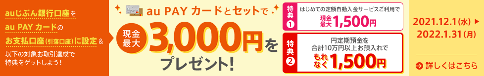 - ※お取引にはauじぶん銀行の普通預金口座が必要です。