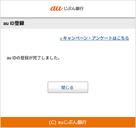 auじぶん銀行へのau IDのご登録は、以下の画面遷移に沿って登録してください。