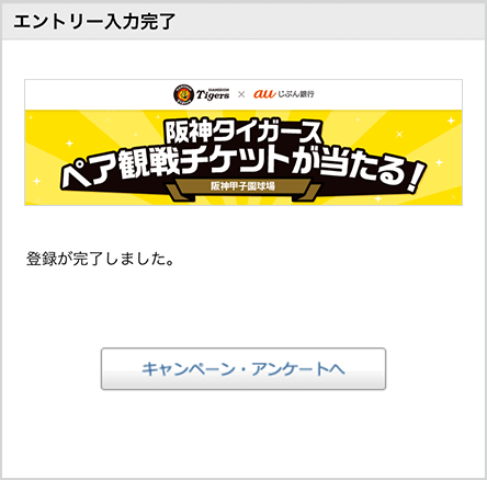 「阪神タイガースペア観戦チケット(阪神甲子園球場)が当たる!」を選んでエントリーボタンを押す