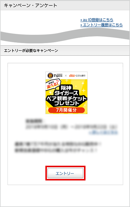 ログイン後、画面左上のメニューより、キャンペーンの「エントリー」を選択