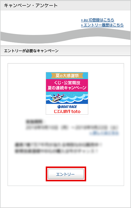 「くじ・公営競技 夏の連続キャンペーン」を選んでエントリーボタンを押す