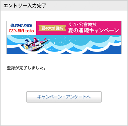 • * 「第1弾 ボートレースキャンペーン」と「くじ・公営競技 夏の連続キャンペーン 全体特典」のエントリーは共通となります。