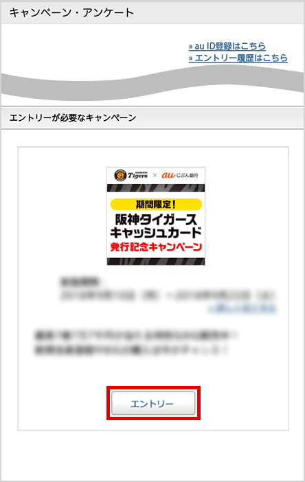 ログイン後、画面左上のメニューより、キャンペーンの「エントリー」を選択
