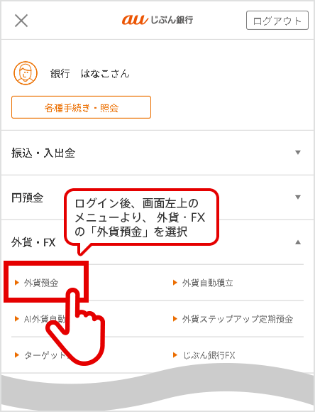 • 詳しくは、外貨預金の詳細および契約締結前交付書面を必ずご確認いただき、お取引ください。