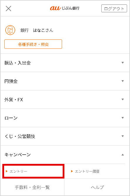ログイン後、画面左上のメニューより、キャンペーンの「エントリー」を選択