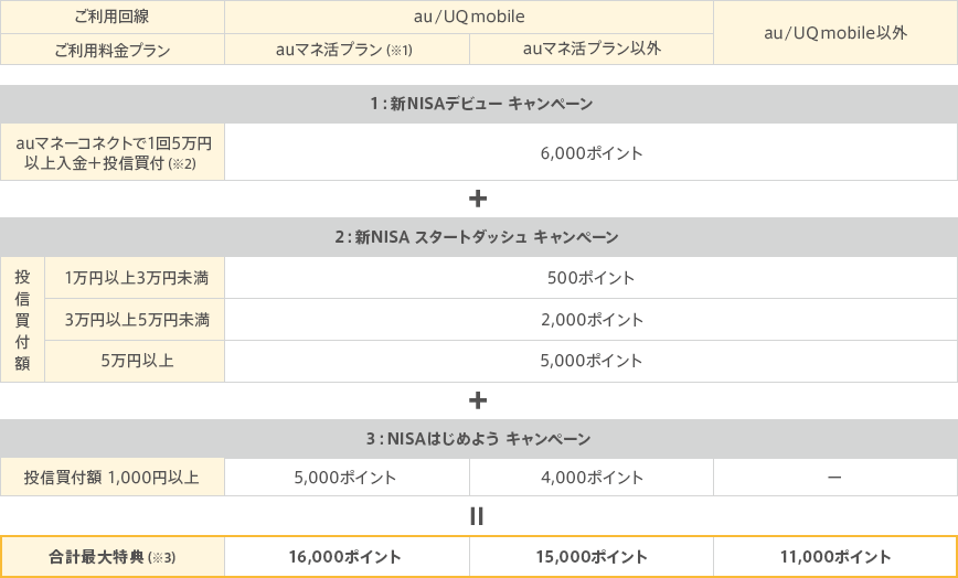 auカブコム証券への初回ログイン、およびauじぶん銀行へのインターネットバンキング初回ログイン(または、キャッシュカード受領後)の翌日に自動で設定されます。