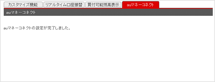 - auじぶん銀行サービスの「auマネーコネクト:auじぶん銀行(リアルタイム口座振替)」が「お申込済」と表示される