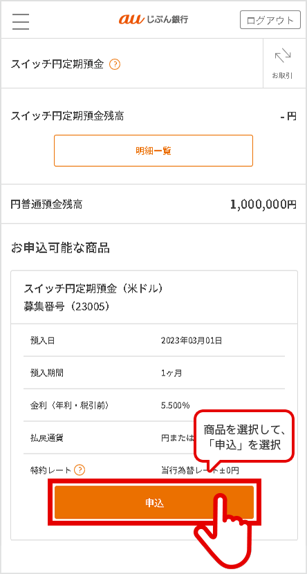対象商品である「プレミアム金利円定期預金」「スイッチ円定期預金」「外貨預金」には元本割れとなるリスクがあります。各商品の重要事項を必ずご確認ください。