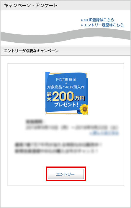 キャンペーンページのエントリーボタンを押してログイン後、「円定期セットキャンペーン」を選んでエントリーボタンを押す