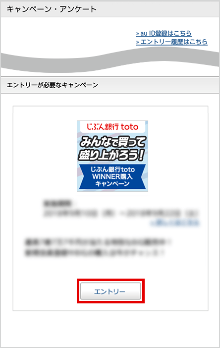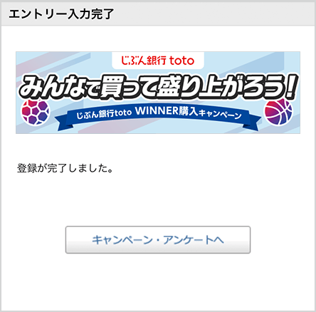 キャンペーンページのエントリーボタンを押してログイン後、「みんなで買って盛り上がろう!じぶん銀行toto WINNER購入キャンペーン」を選んでエントリーボタンを押す