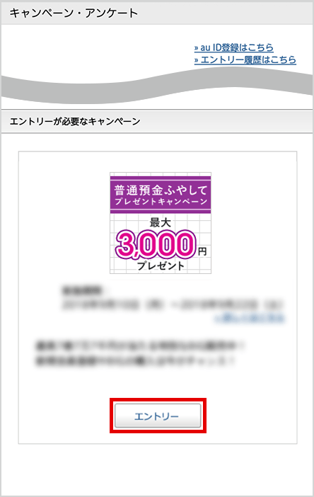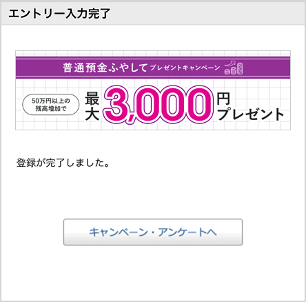 キャンペーンページのエントリーボタンを押してログイン後、「普通預金ふやしてプレゼントキャンペーン」を選んでエントリーボタンを押す