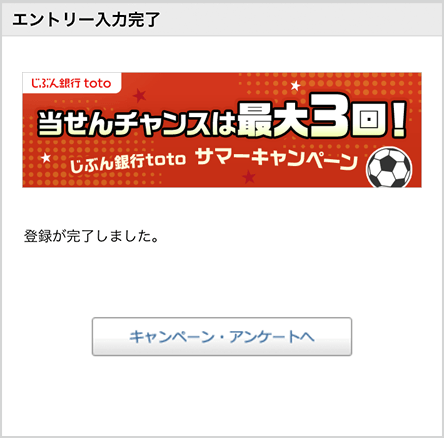 はい。エントリーのうえ、じぶん銀行totoの新規会員登録でもれなく現金100円をプレゼントいたします。さらに3人に1人は、抽せんで1,000円に特典がアップいたします。